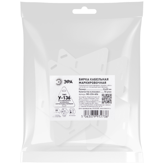 Треугольная бирка У-136 для контрольных кабелей, размер 52 х 55 мм. Бирки маркировочные используются для маркировки кабельных линий, узлов и проводов, они придают информативность кабельной линии, что позволяет быстро идентифицировать кабель без использования тестового оборудования. Собственное производство ЭРА.