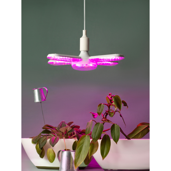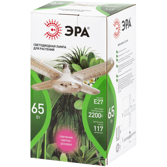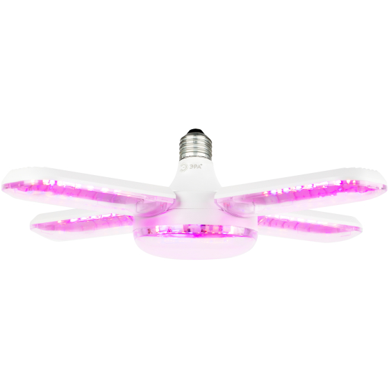 ЭРА GREEN LINE ФИТО-65W-PL-E27-GR - 5-ти лепестковая светодиодная фитолампа мощностью 65 Вт и цоколем E27. Светло-розовое свечение.