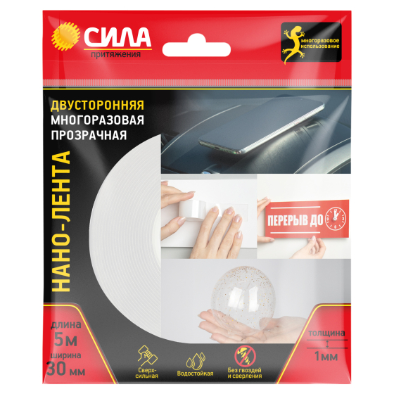 Двусторонняя многоразовая клейкая лента СИЛА (нано-скотч) – это инновационное средство крепления, которое обладает широкой сферой применения.