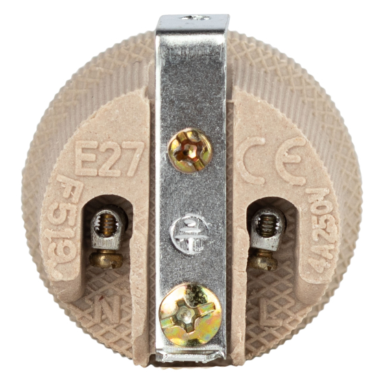 Керамический патрон имеет держатель, изготавливается из жаропрочной керамики, поэтому выдерживает высокую температуру нагрева, не подвержен коррозии, что обеспечивает долгий и надёжный срок эксплуатации. Используется для фиксации и контакта ламп в светильниках бытового и промышленного назначения.