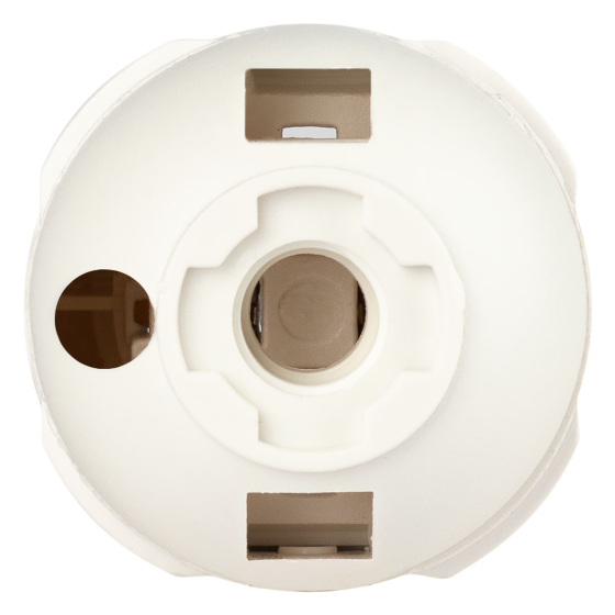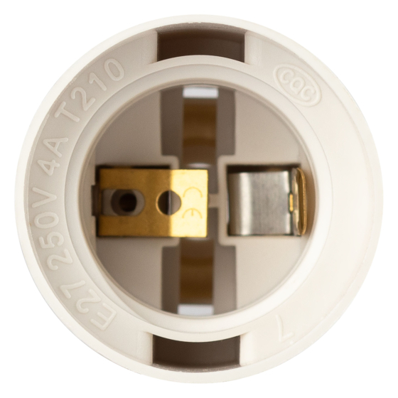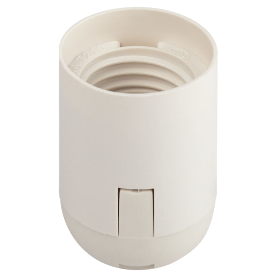 Патрон подвесной изготавливается из термостойкого пластика, материал химически устойчивый к агрессивным средам, обладает высокой прочностью и теплостойкостью; не обладает способностью выдерживать высокие температуры нагрева, поэтому его чаще всего используют для ламп накаливания мощностью не более 60 Вт; имеет быстрый монтаж в прижимные клеммы.