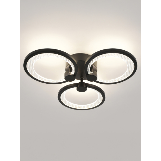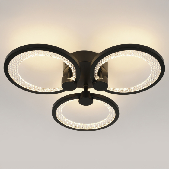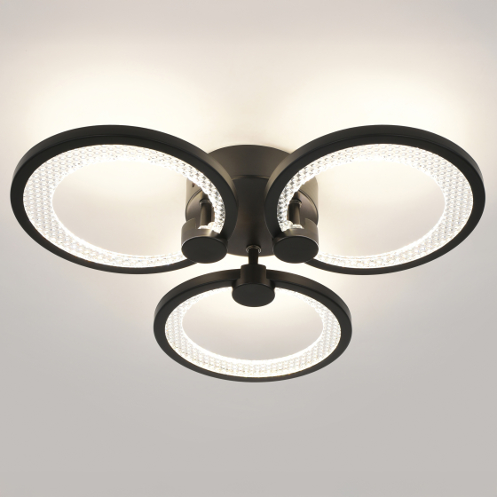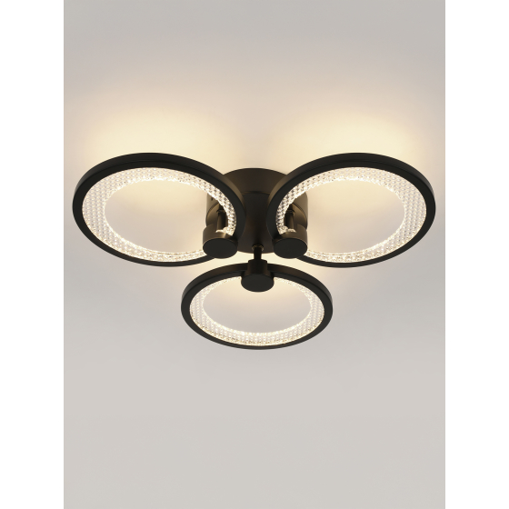 Потолочный светодиодный светильник в стильном чёрном цвете — современное решение для уютного и функционального освещения. В комплекте пульт ДУ с регулировкой яркости и цветовой температуры в диапазоне 3000–6500К.