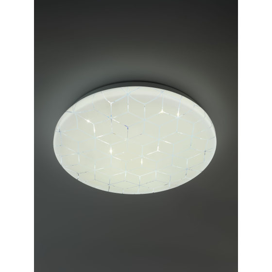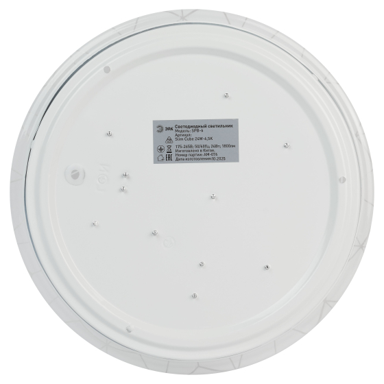 Мощность устройства составляет 24 Вт, световой поток — 1 800 Лм. Благодаря матовому рассеивателю свет распределяется мягко и равномерно, не создавая бликов и не утомляя глаза. Цветовая температура 6 500K обеспечивает яркое, холодное белое освещение, идеально подходящее для рабочих зон, кухонь, офисов и помещений, где требуется высокая концентрация внимания. Рекомендуемая площадь освещения — до 8 м². Встроенные светодиоды обеспечивают низкое энергопотребление, срок службы до 30 000 часов и стабильное свечение без мерцания.