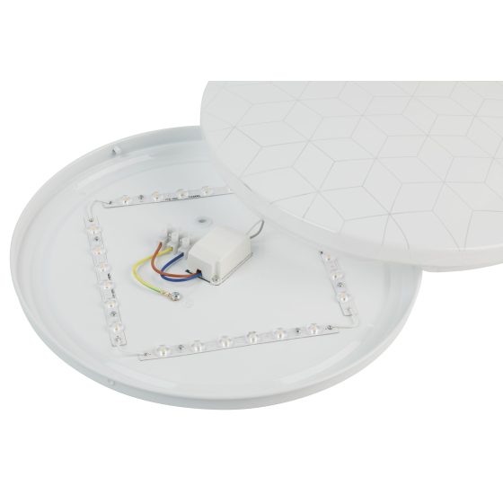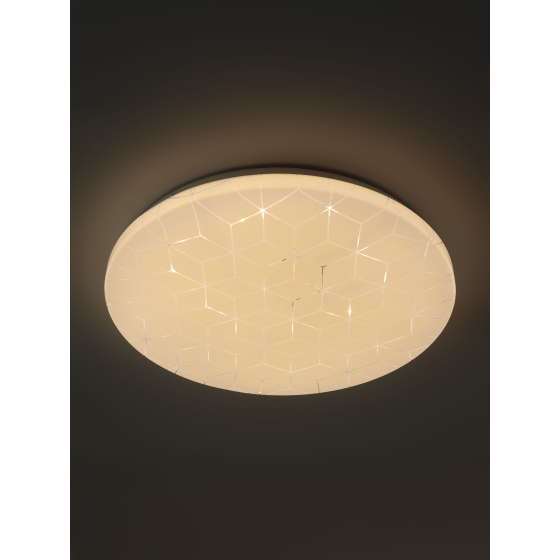 Мощность устройства составляет 36 Вт, световой поток — 2700 Лм. Благодаря матовому рассеивателю свет распределяется мягко и равномерно, не создавая бликов и не утомляя глаза. Цветовая температура 4 000K обеспечивает комфортное нейтрально-белое освещение, подходящее как для работы, так и для отдыха. Рекомендуемая площадь освещения — до 12 м². Встроенные светодиоды обеспечивают низкое энергопотребление, срок службы до 30 000 часов и стабильное свечение без мерцания.