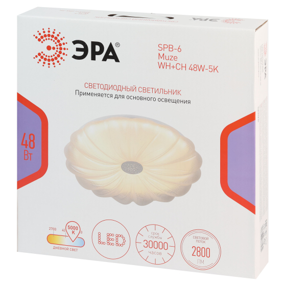 Светодиодный светильник ЭРА SPB-6 Muze 48W-5K WH+CH – современное решение для общего освещения жилых и коммерческих помещений. Компактные размеры 385×80 мм позволяют использовать его в сухих пространствах (степень защиты IP20) с низкими потолками, а рельефная форма плафона сочетается со многими интерьерными стилями. Мощность светильника 48 Вт, а световой поток – 2800 лм. Матовый рассеиватель обеспечивает равномерное распределение света без бликов и дискомфорта для глаз. Цветовая температура 5000 К создаёт комфортные условия для работы и учёбы, рекомендуемая площадь освещения – 12 м².