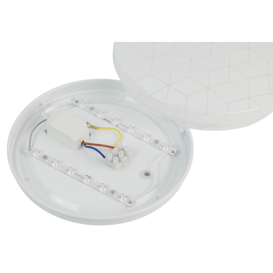 Мощность устройства составляет 18 Вт, световой поток — 1260 лм. Благодаря матовому рассеивателю свет распределяется мягко и равномерно, не создавая бликов и не утомляя глаза. Цветовая температура 4000K обеспечивает комфортное нейтрально-белое освещение, подходящее как для работы, так и для отдыха. Рекомендуемая площадь освещения — до 6 м². Встроенные светодиоды обеспечивают низкое энергопотребление, срок службы до 30 000 часов и стабильное свечение без мерцания. Светильник легко монтируется, не требует обслуживания и может использоваться как основное, так и дополнительное освещение.