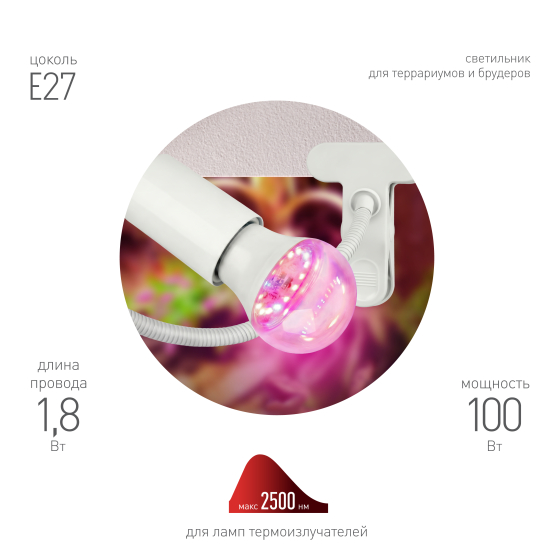 Светильник ЭРА FITO-E27-FLEX-100W-GR — это универсальное и элегантное решение для тех, кто заботится о здоровье растений, рептилий и молодняка птицы.