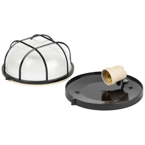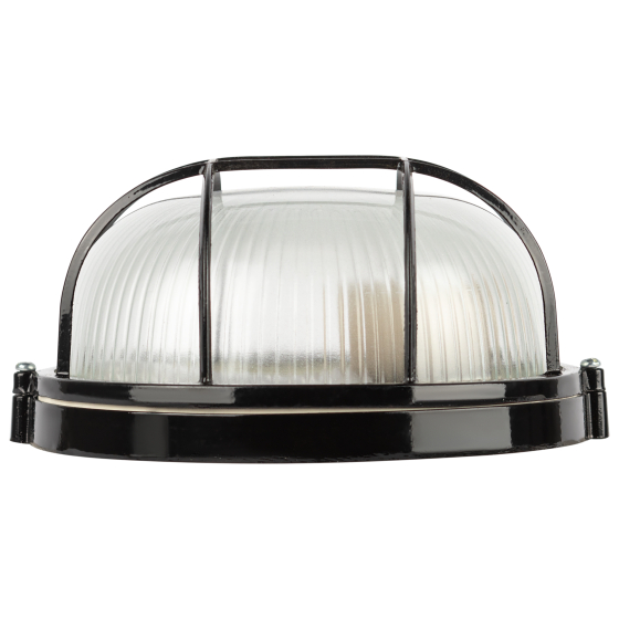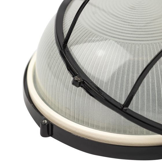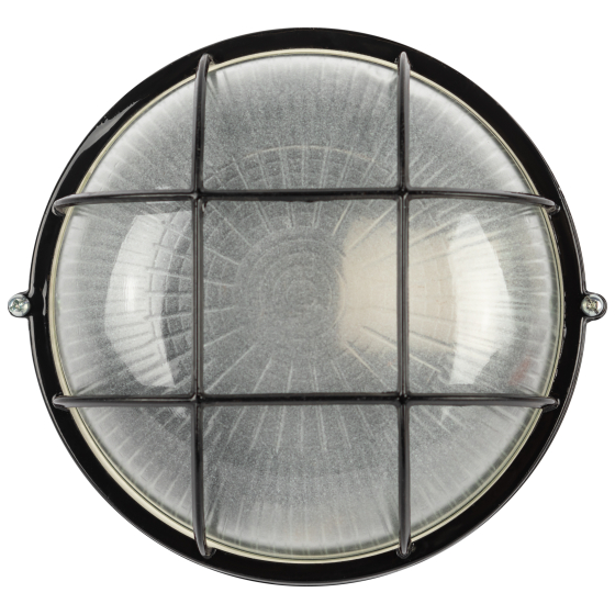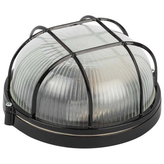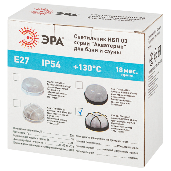 ЭРА НБП 03-60-002 - термостойкий светильник серии "Акватермо" в черном цвете с защитной решеткой.