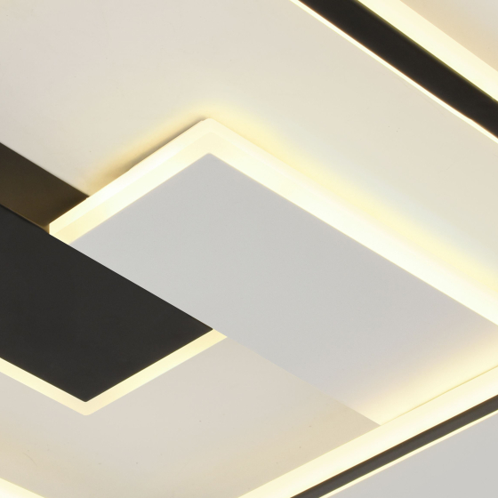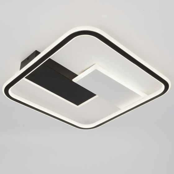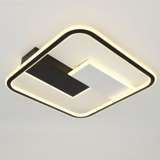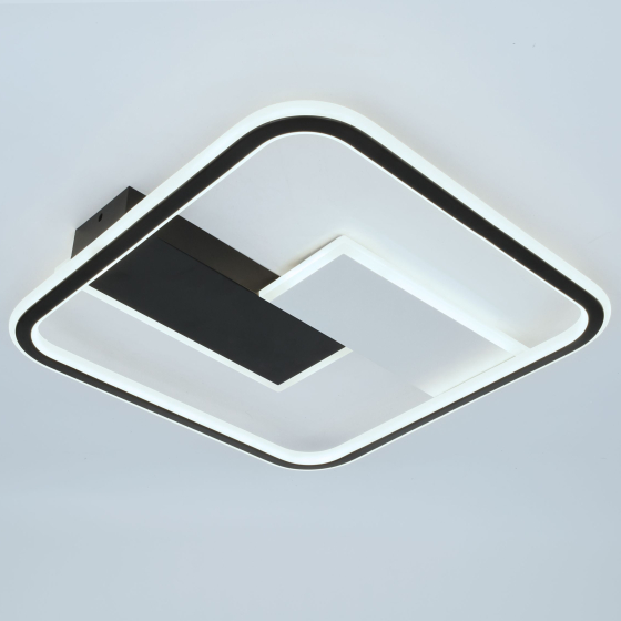 Потолочный светодиодный светильник квадратной формы в лаконичном чёрно-белом дизайне. Оснащён пультом дистанционного управления с регулировкой яркости и цветовой температуры в диапазоне 3000–6500К. Мощность 104 Вт обеспечивает яркое и комфортное освещение для любых интерьеров.