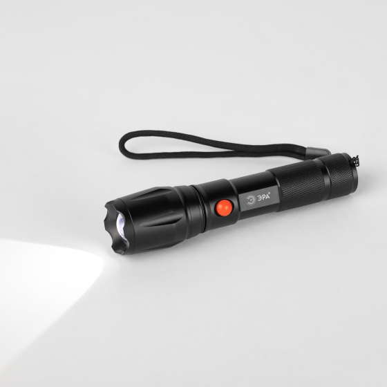 ЭРА АР Калибр - универсальный светодиодный аккумуляторный фонарь с лучом повышенной дальности, пятикратным зумом и встроенным светонакопителем. Его легко найти в тёмном помещении или в траве - после выключения сохраняет лёгкое свечение.