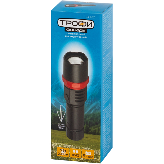 Светодиодный фонарь ручной аккумуляторный 5 Вт оптический Zoom 3 режима, дисплей