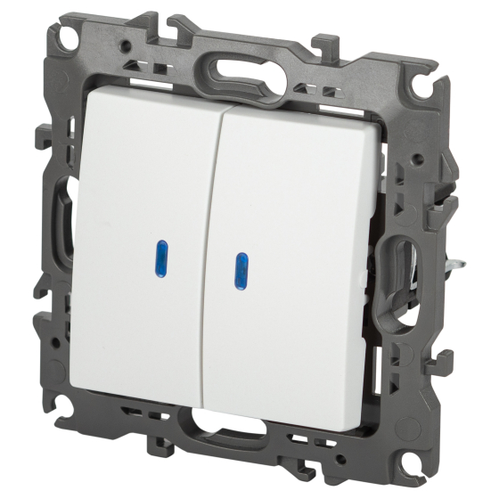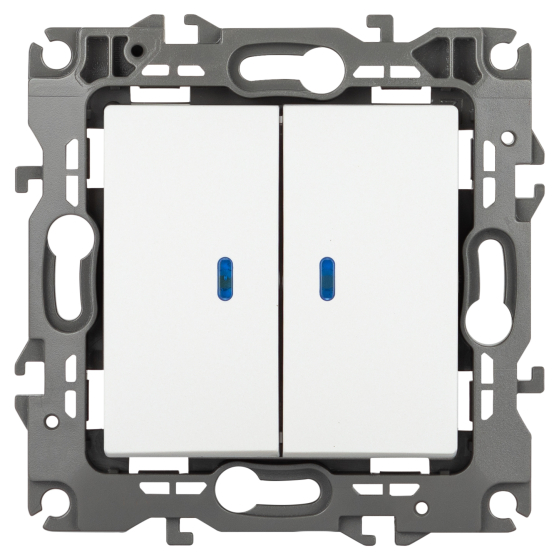 Выключатель 2-клавишный с подсветкой серии Эра 12 скрыт.установки механизм цвет белый матовый 12-1105-01М.