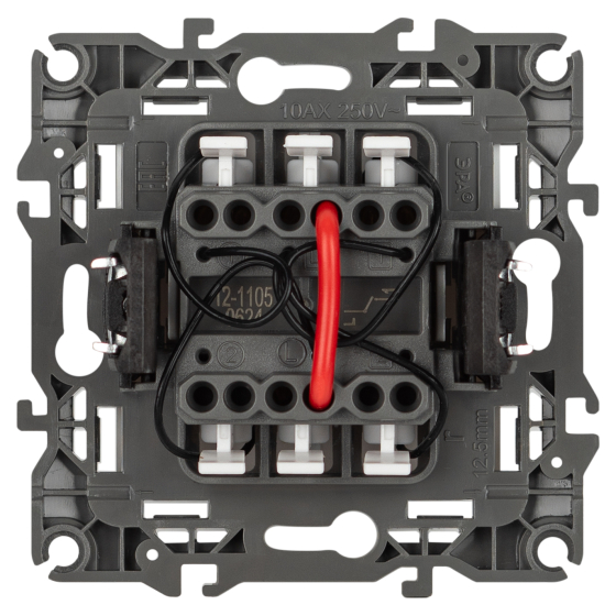 Номинальные характеристики 10А 250В. Сделан из поликарбоната, оснащёно автоматическими клеммами для быстрй и надёжной фиксации жил кабеля в механиме. Парные клеммы обеспечивают соединение шлейфом. Монтаж в подрозетник производится и на лапки, и на винты. Рамки приобретаются отдельно. Рамки Эра 12: 1 пост 12-5001-хх, 2 поста 12-5002-хх, 3 поста 12-5003-хх, 4 поста 12-5004-хх, 5 постов 12-5005-хх. Рамки Эра 12 Сатин: 1 пост 12-5101-хх, 2 поста 12-5102-хх, 3 поста 12-5103-хх, 4 поста 12-5104-хх, 5 постов - 12-5105-хх (хх - код цвета: 01-белый, 02-слоновая кость, 03-алюминий, 04-шампань, 05-антрацит, 06-чёрный, 07-ольха(белёный дуб-сатин), 08-вишня, 09-дуб, 10-венге, 11-сосна, 21-жёлтый, 22-оранжевый, 23-красный, 24-охра, 25-бордо, 26-лайм, 27-зелёный, 28-голубой, 29-синий).