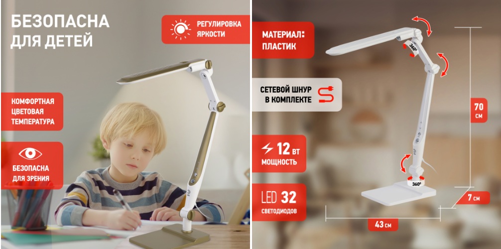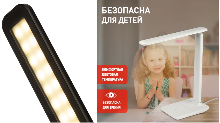 Светодиодные настольные лампы (LED) создают яркий ровный свет и экономят электроэнергию.