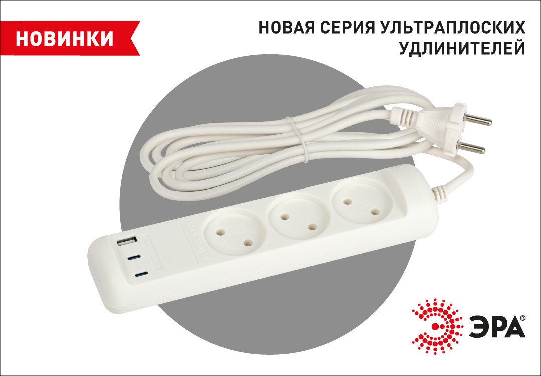Представляем новую серию ультраплоских удлинителей ЭРА, разработанных для удобного размещения в жилых и офисных пространствах.