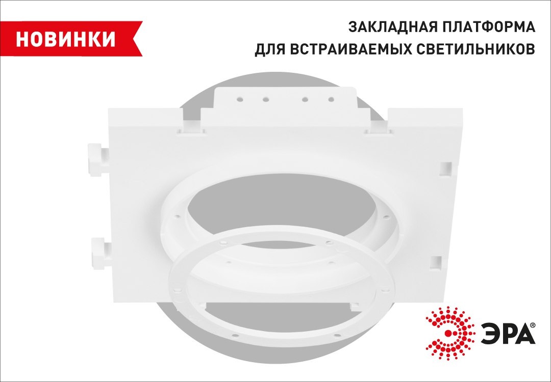 ЭРА KL114 WH (артикул: Б0071006) — закладная платформа для монтажа встраиваемых светильников в потолки из ПВХ-панелей и натяжные потолки.