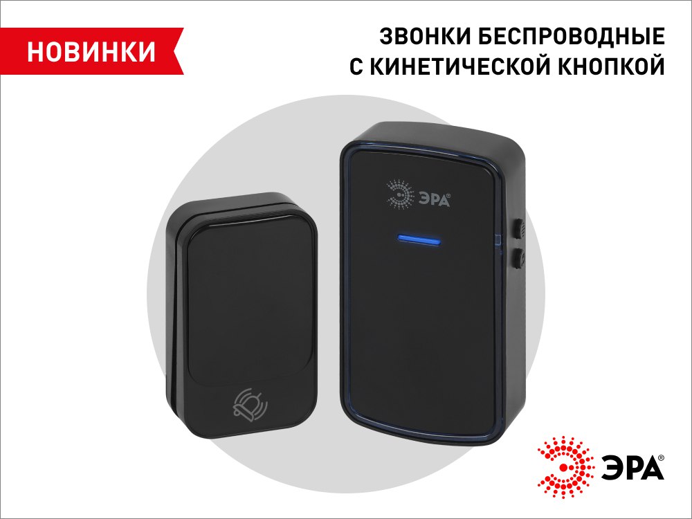 Новые звонки от ЭРА работают от сети 230 В, при этом питание кнопки осуществляется за счёт энергии нажатия, что упрощает эксплуатацию и снижает затраты на обслуживание.