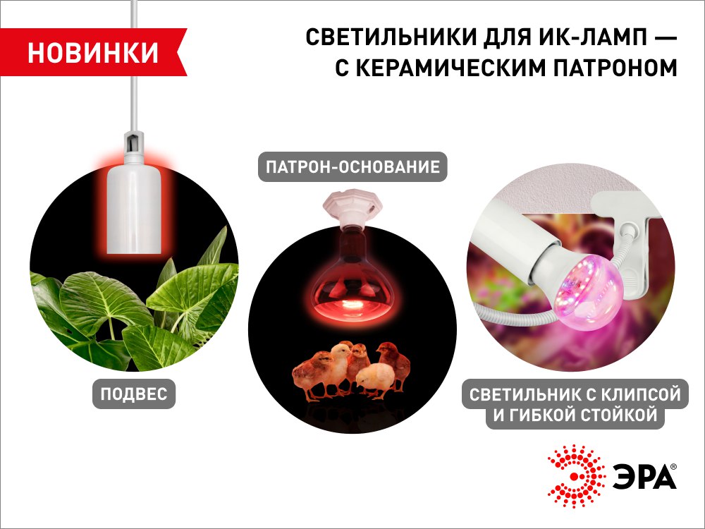 Представляем новую линейку светильников ЭРА для применения с мощными обогревающими лампами, используемыми при содержании животных и выращивании растений.